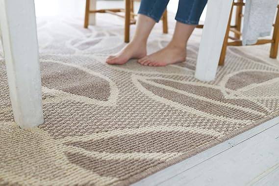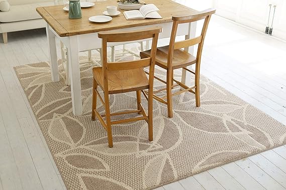 スミノエ(Suminoe) ダイニングラグ ベージュ 110×130cm 防ダニ ラインリーフ 13462776
