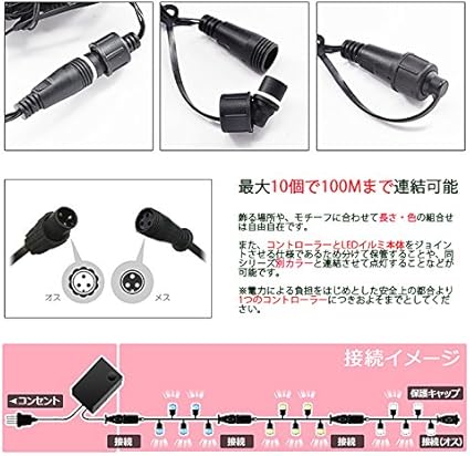 【広拡散LEDを採用して一粒一粒が明るくてどの方向から見ても綺【電気安全法PSE適合品(経済産業省に事業届出提出済み)正規メーカー品】イルミネーションライト定番商品 LED数100球 長さ10m 線径1.8mm 連結コネクター付 1000球まで連結可能。8つの点灯パターン メモリー記憶付き(コンセント抜いても再度差込むと同じ点灯パターンになるので再設定の手間がかかりません。)
