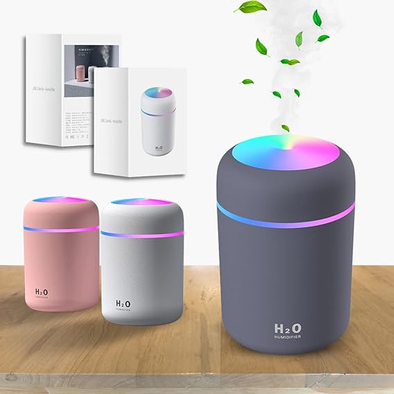Prv 【 カビ防止で清潔感最強 加湿器 卓上 小型 】 丸洗い可能 加湿器 USB 大容量300ML 8時間 2WAY デスク 清潔 上部注水 車用 小型 加湿器 オフィス 7色 寝室 乾燥対策 ほこり対策 花粉対策 ナイトライト 間接照明 アロマ 次亜塩素水 対応 説明書 USB 付属 (予備フィルター付き) (グレー)