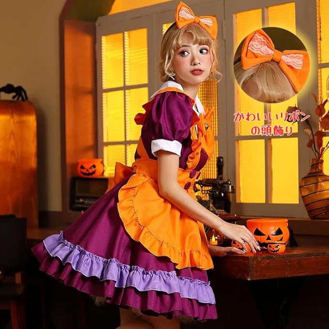 [RidrificM8] 【2024年ハロウィンのNEWスタイル】ハロウィン コスプレ 衣装 レディース エプロン 魔女 魔法使い ロリータ 大人 仮装 メイド服 セクシー 可愛い 大人用 ワンピース コスチューム かぼちゃ ウィッチ オレンジ 鈴 リボン結び 人気 ワンピース パーティー イベント 撮影 文化祭 学園祭 cosplay