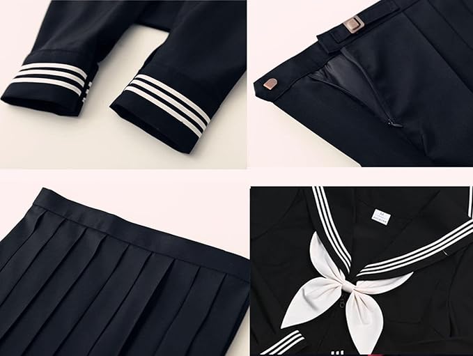 [カウィー・レクスハ] 【まるこの猫柳】セーラー服 長袖 半袖 白い 紺 ロングスカート コスプレ 学園祭 文化祭 仮装 本格制服 5点セット 靴下付き