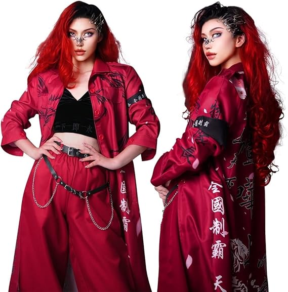 [Hotiego] ハロウィン 特攻服 コスプレ ヤンキー 赤 喧嘩上等 ツッパリ 不良 暴走族 暴走天使 聖夜制覇 走死走命 天上天下唯我独尊 愛羅武勇 コスチューム 男女兼用 舞台装 演出服 変装 仮装 イベント 忘年会 cosplay 撮影 祭り 龍虎 XS