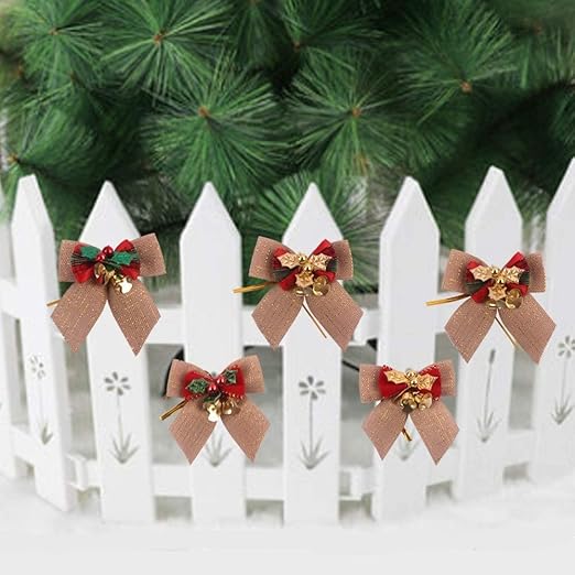 クリスマスリボン ベル付き ミニリボン 12個セット かわいい 蝶結び ベル付き クリスマス飾り DIY用 クリスマスツリー装飾 プレゼント包装 リボン装飾 DIY手作り オーナメント リーズ飾り付け DIY 手芸 (2個セット)