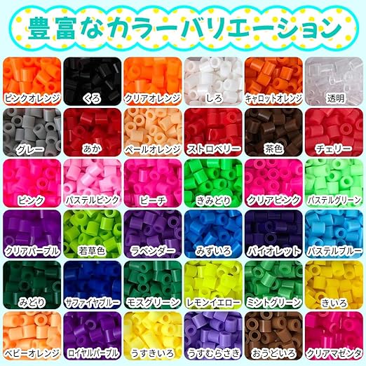 超大容量の72色が2ケース、約20000粒入り。たくさんの種類のカラーがあるので、あんなものも、こんなものもと、お子様のアイディア無限に広がります!