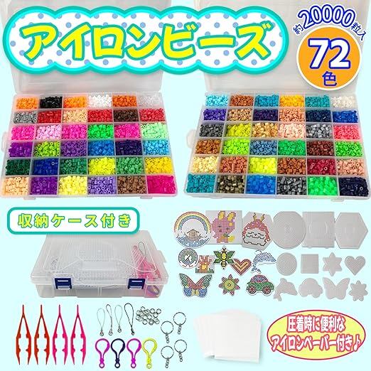 アイロンで繋がる魔法のビーズ アイロンアートビーズ 72種類 アイロンビーズ 5mm 約20000個 リフィル大型ケースセット 2個 補充ビーズ アクセサリーセット