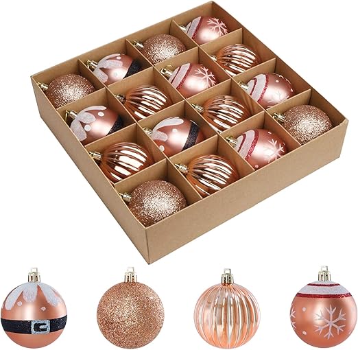 SZsic クリスマスツリー オーナメント 16個入り 銅金色 北欧風 ボールクリスマス ツリー 飾り 飾り付け(ゴールド)