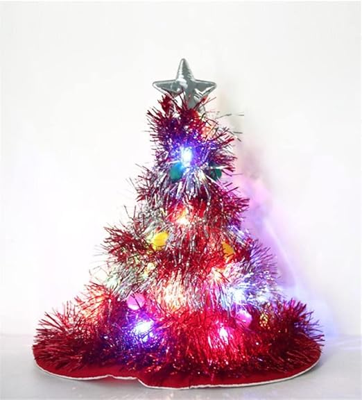 [Lhyxuuk] クリスマス帽子 LEDクリスマスハット光るサンタ帽子クリスマスツリー キャップ 帽子 被り物 コスプレ小道具 面白い 帽子 クリスマス ハロウィン イベント パーティー 面白い 撮影道具 (シルバー+レッド)