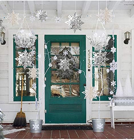 【セットの内容】6個雪花飾りが入っています。中には、15cmx2枚、20cmx2枚、25cmx2枚、雪花ごとに20cm糸が付いています。