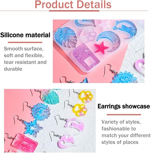 ★UVレジン、エポキシ樹脂、樹脂粘土などにご利用いただけるシリコンモールドです。イヤリングのアクセサリーなど、楽しくレジン作品作りをお楽しみいただけます。