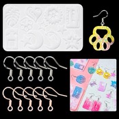 iSuperb シリコーンモールド イヤリング形 13種類 宝石ペンダント+5 対銀メッキローズゴールド イヤーフック+5 組銀白金イヤーフック イヤリング ネックレス ハンドチェーン キーチェーン キーホルダー クリスマスツリー レジンモールド きれい (イヤリング形)