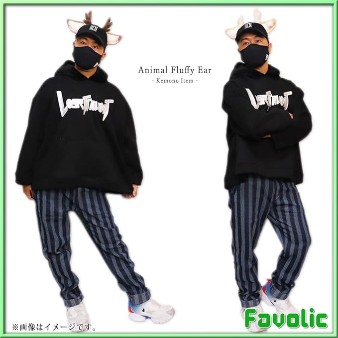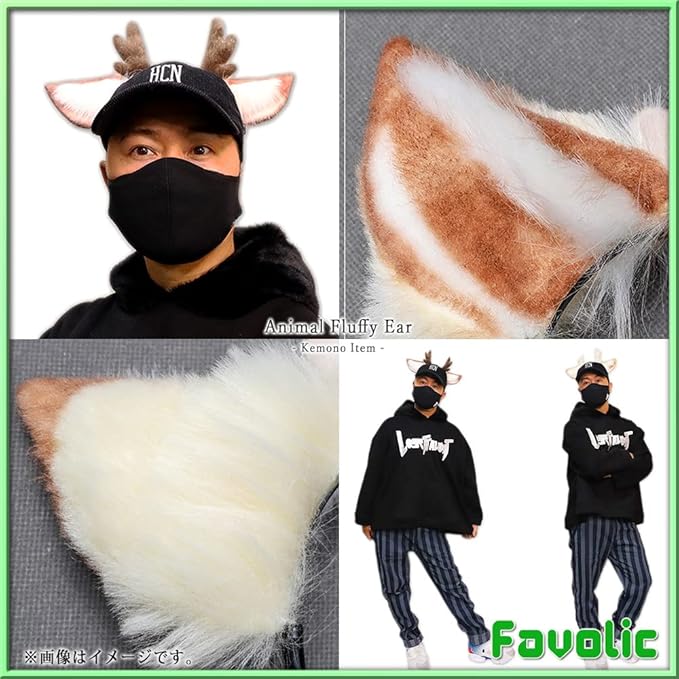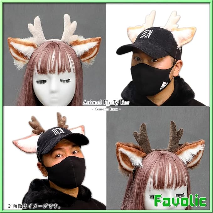 トナカイ もふもふ耳 角 ふわふわ 獣人 動物 鹿 クリスマス カチューシャ ケモナー コスプレ 仮装 犬マスク 男女兼用 衣装 Favolic