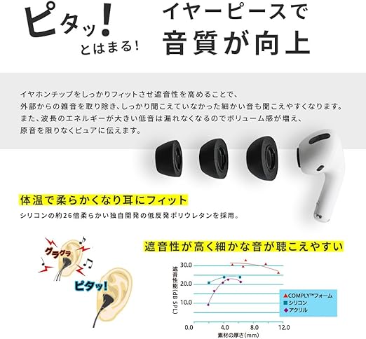 【独自のオーバル形状】COMPLYフォームチップは、特殊コアを備えたカスタム形状を実現し、あなたの耳孔に完璧なフィット感と快適性を提供いたします。不意の脱落を心配することなく自由に音楽が楽しめます。また、大切なイヤホンを埃や耳垢から守るフィルターがつきます。ワンタッチで取り付けも非常に簡単です。