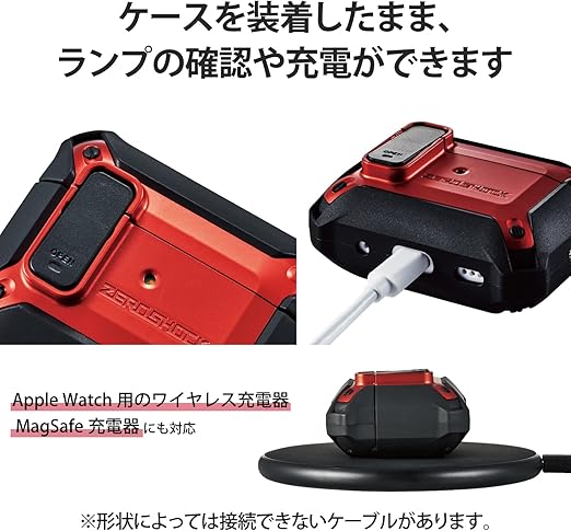 エレコム AirPods Pro 2 第2世代 2022年 用 ケース 耐衝撃 衝撃吸収 カラビナ付き ZEROSHOCK Lockシリーズ エアークッション 二層構造 コーナークッション magsafe充電 ワイヤレス充電 対応 レッド AVA-AP4ZEROLRD