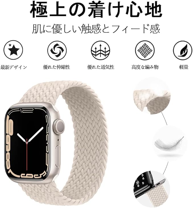 Apple Watch バンド ブレイデッドソロループ 編組バンド 通気性 防汗 取付簡単 交換ベルト 柔らかいシリコーン糸混紡リサイクルヤーン素材 コンパチブル apple watch series ultra/8/7/6/5/4/SE/3/2/1対応 38mm 40mm 41mm 42mm 44mm 45mm 49mm アップルウォッチ バンド iwatch バンド レディース メンズ プレゼント