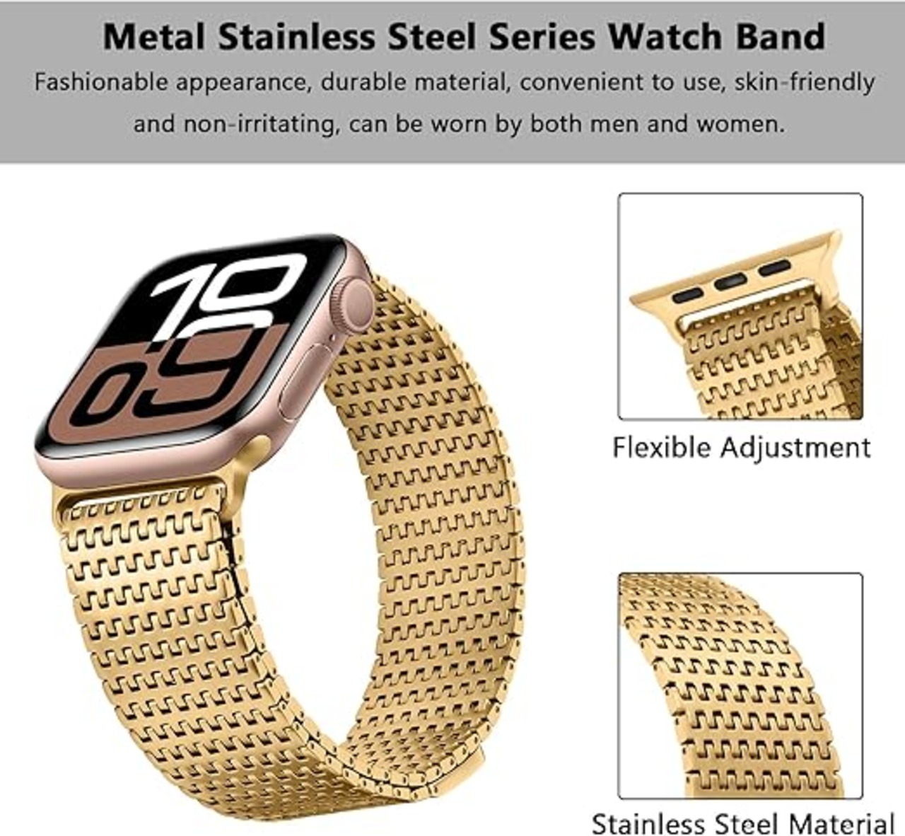 Anlinser コンパチブル アップルウォッチ バンド/Apple Watch バンド 42mm 41mm 40mm 38mm、ステンレススチールループ磁気メタルストラップ Apple Watch シリーズ 10 9 8 7 6 5 4 3 SE 用、金