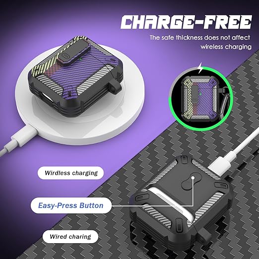 RFUNGUANGO Airpods Case 2 および 1 クリーニングキット付き、飛散防止ラッチデザイン、フロント LED 可視、AirPod ケース - カーボンファイバーパープル