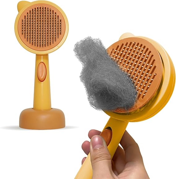 FelineBees 猫 犬 ブラシ 皮膚に優しい 痛くない 長毛 短毛 ヒーリングブラシ スリッカーブラシ くし ペット用 ペットブラシ 毛取り ブラッシング フィーラインビーズ (マンダリンオレンジ)