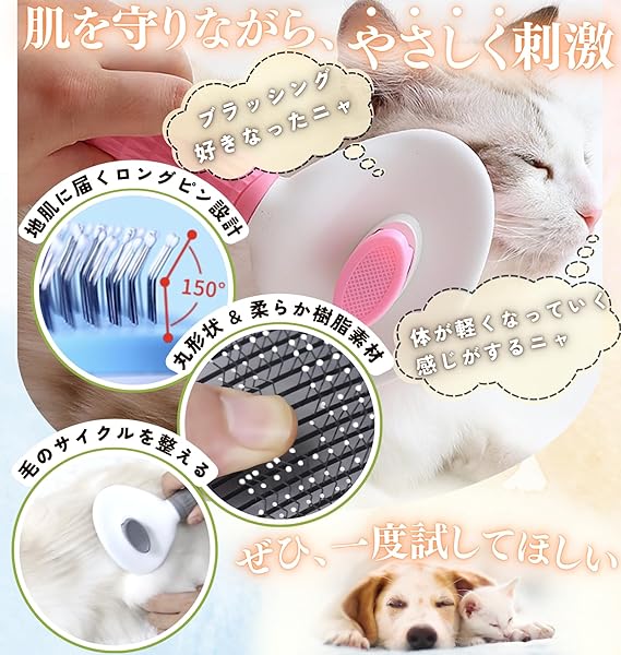 人体工学デザインで長時間使用でも疲れにくい。先端は丸く加工されており、ペットの皮膚を傷つけない。初心者でも安心して使用可能。