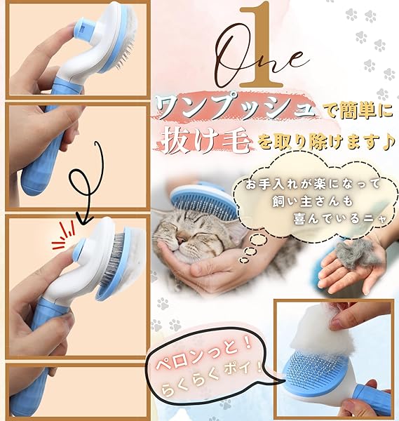 ワンタッチで毛を取り除ける機能付き。ボタンを押すだけで簡単に毛を除去。使用後は壁に掛けて収納可能。