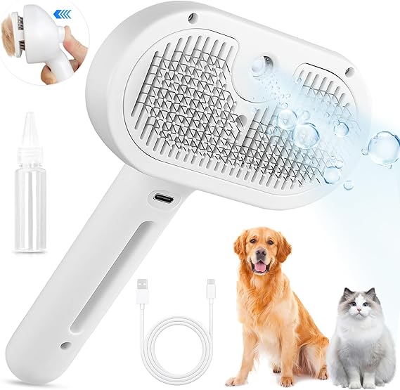 ペット用ブラシ【ワンプッシュ式】犬用ブラシ 猫ブラシ 抜け毛取り Gagaciso 噴霧式 USB充電式 痛くない スリッカーブラシ マッサージ 猫くし 犬くし ペットグルーミングブラシ 短毛 中毛 長毛 猫用品 丸洗い可能 皮膚に優しいブラシ 猫犬通用 (White)