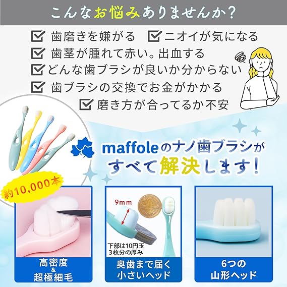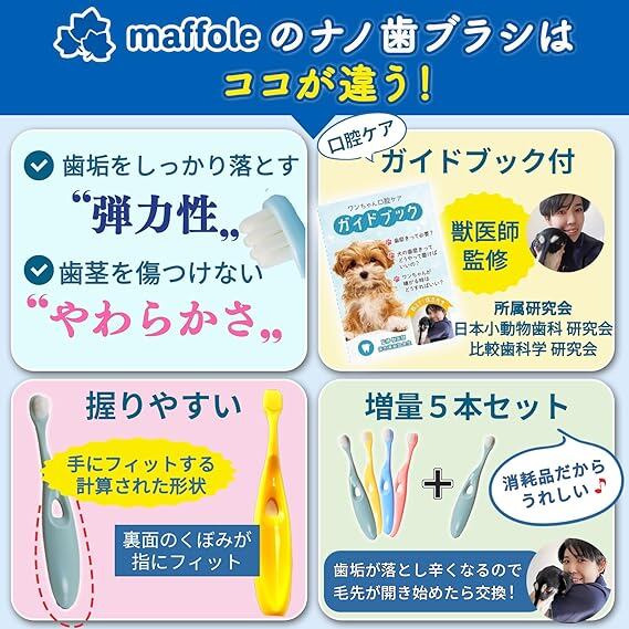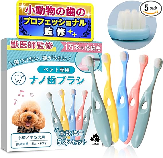 犬 歯ブラシ 小型犬 【小動物歯科研究医が監修x1万本の極細毛】 ナノコーティング 歯磨き ガイド付 奥まで届くカーブ 抗菌 抗ウイルス 体重5kg-20kg 毛高10mm maffole (波型ヘッド カラフル)
