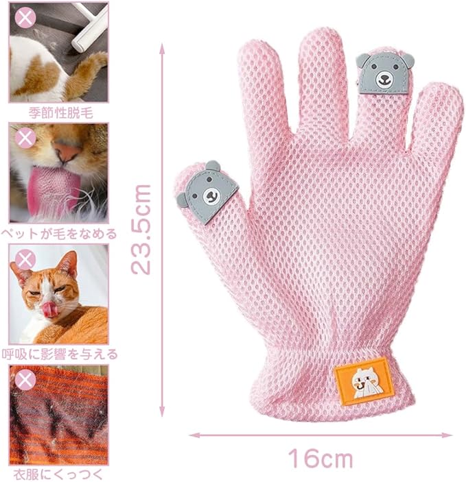 4. 手の甲にマジックテープが取り付けられており、全ての手のサイズに合うため、毛がつかず束縛されずに使えます。猫、犬、ウサギなどの長い