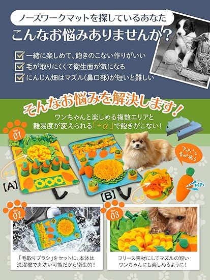 【YouTuber×ドッグトレーナー推薦】 ノーズワーク 犬 知育玩具 ペット にんじん畑 おもちゃ ノーズワークマット 早食い防止 [日本未発売/国内正規品] 毛玉取りブラシ 付き 2024 【A】 2in1