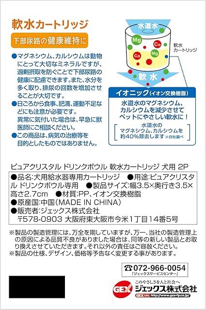 ジェックス GEX ピュアクリスタル ドリンクボウル 軟水カートリッジ 下部尿路の健康維持に 犬用 2個[約2ヵ月分]
