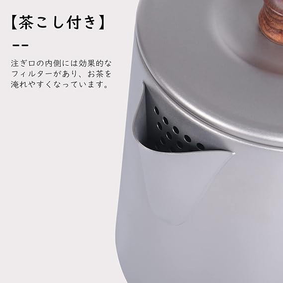 商品詳細--セット内容: ケトル×1、500mlカップ ×1、180mlカップ ×1、120mlカップ ×1、収納袋×1;容量と重量(約)1500ml/254g+500ml/147g+180ml/31g+120ml/24g。