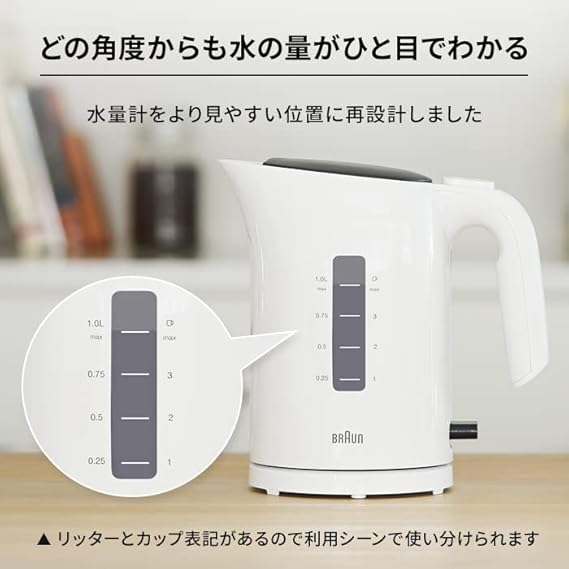 ブラウン(BRAUN) ピュアイーズ 電気ケトル(1.0L) ホワイト WK304AJ-WK3000WH