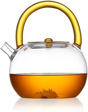 透明急須 ティーポット、直火対応、大容量、丸型、新しいデザインスプリングのよなステンレス茶こし付き、片付け便利