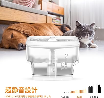 Petsuper 猫水飲み器 自動給水器 給水器 自動 犬 水飲み器 2.5L大容量 自動水やり機 みずのみ器 多重濾過 循環式 湧水式設計 静音 給水器 ペット用 見える水位線 複数のペットに対応 中小型犬猫用(PW03)