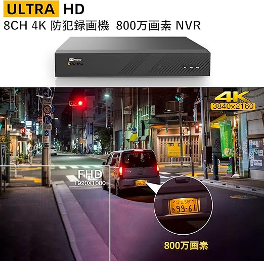 SOOHAO 防犯レコーダー 防犯録画機 NVRビデオレコーダー 防犯カメラ対応 4K 8CH H.265画像圧縮方式 モーション検知 遠隔監視 メール警報 Ipad/iPhone/Android スマートフォン対応 HDDなし