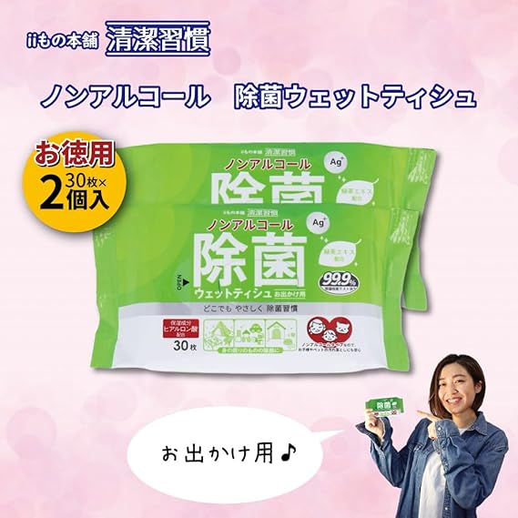 清潔習慣 ノンアルコール 除菌ウェットティシュ お出かけ用 30枚×2個パック