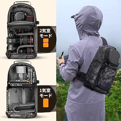【サイドアクセス】サイドアクセスデザイン、使い勝手がいい。スリングバッグを降ろさないでもそのままカメラを取り出すことができるので、素早く撮影に入れて、シャッターチャンスを逃しません。