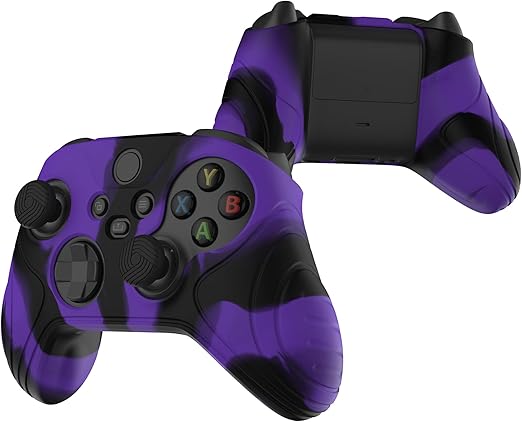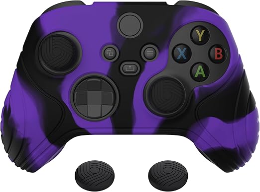 eXtremeRate PlayVital Samurai版Xbox Series X/Sコントローラーに対応用アンチスリップシリコーンカバースキン、ブラックの親指グリップキャップ付き、Xbox Coreワイヤレスコントローラ対応用ソフトラバーケースプロテクター【パープル&ブラック】