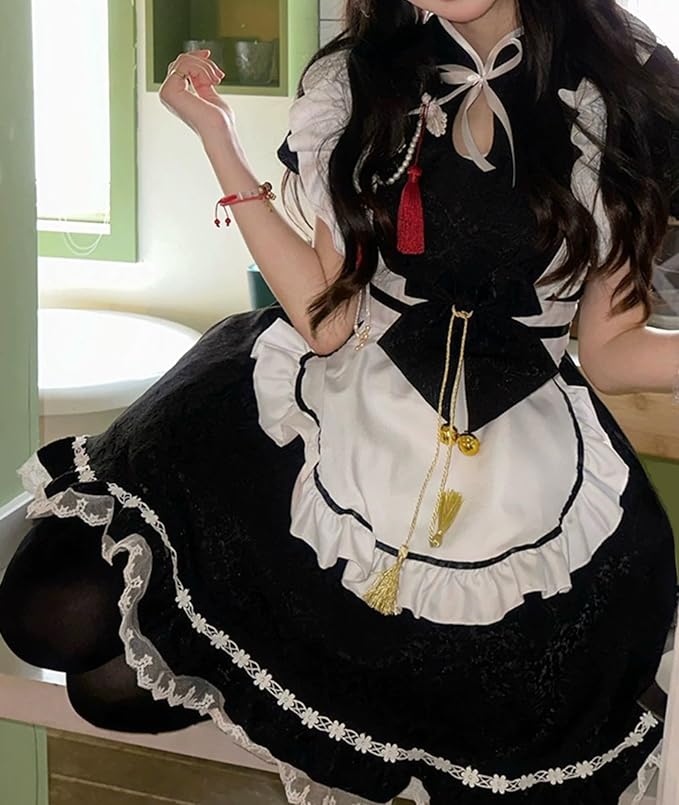 [YZZYQQ] メイド服 セット ハロウィン コスプレ衣装 セクシー 可愛い ロリータ 小悪魔 メイド服 ロリータ コスプレ 半袖 蝶結ぶ パーティー イベント 演出服
