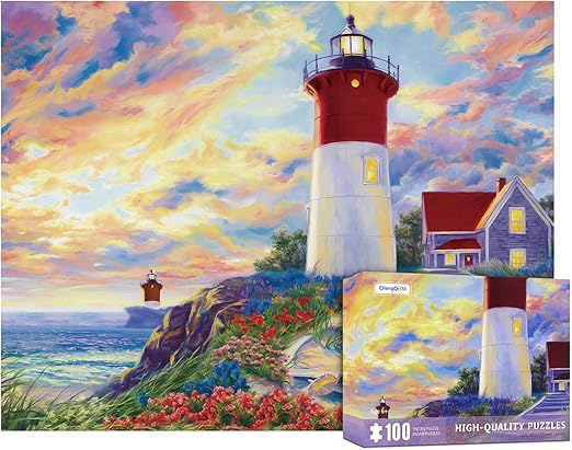 CHengQiSM 100ピース ジグソーパズル ラージピース 灯塔 100ピース パズル 絵画 子供&大人 ジグソーパズル 初心者 絵画 風景 花 空 海 おもちゃ 6歳以上 プレゼント(45x35cm)