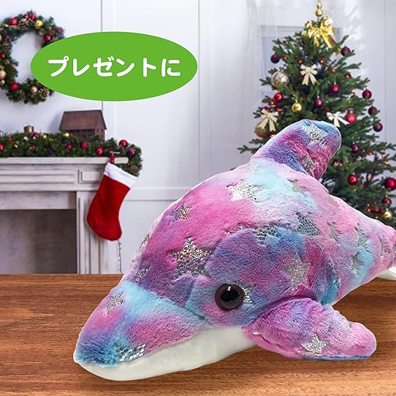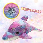 【キラキラ・かわいい♪イルカのぬいぐるみ】ふわっとしてもっちりとした海の人気者イルカ。1度手にするとクセになるくらいたまらなく気持ちいいマスコットです。一緒にスヤスヤ眠りたくなる癒しのアイテム。またキラキラ星型ラメの付いた今、流行のオーロラ柄のぬいぐるみです。
