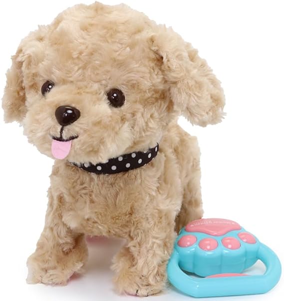マザーガーデンの電池で動く犬のぬいぐるみ。お子様のお友達にかわいい電動ペットはいかがですか? ワンワン鳴いたり歩いたり、しっぽを振って甘えます。