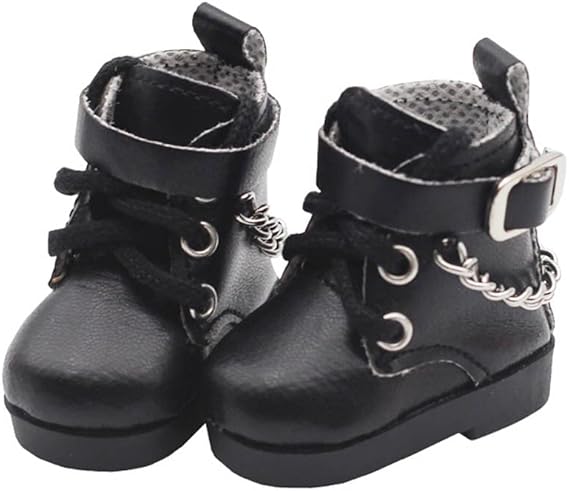 niannyyhouse 15cm ぬいぐるみ革靴 1/6bjd ドール チェーンブーツ 靴の長さ4.5cm 着せ替え 綿人形 アクセサリー (Black)