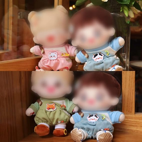 製品名前:15cm綿人形サイズのオーバーオール+スウェット。素材:綿。スタイル:グリーン狐2点。