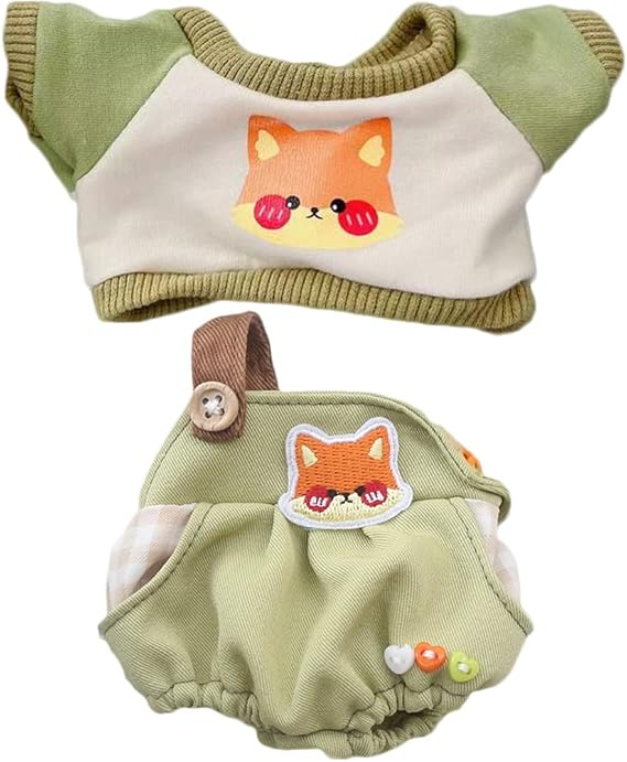 YUYAKESHI 人形 綿人形の服 人形服 着替え ぬいぐるみ用 スウェット かわいい アクセサリー 上着 ぬいぐるみ オーバーオール アパレル部品(グリーン狐2点15cm)