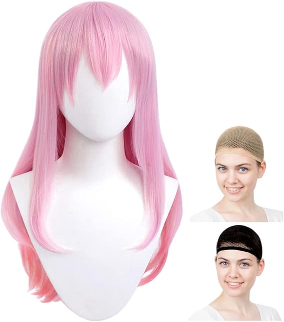 CaseEden コスプレ ウィッグ すーぱーそに子 Super Sonico ロング グラデーション ピンク ピンク髪 ホワイトメルチェ・ウィッグネット2個セット