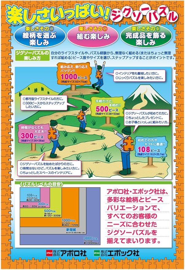 ピースの大きさや種類を調整することにより、難易度を変えることができる。