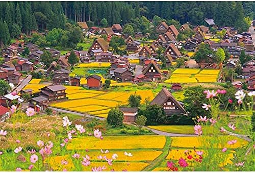 1000ピース ジグソーパズル コスモスゆれる白川郷 (50x75cm)
