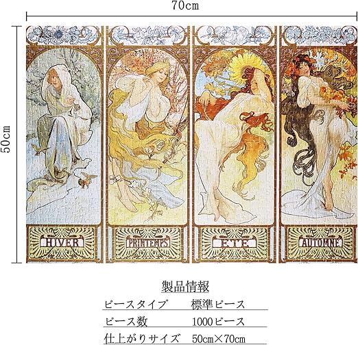 MISITU ジグソーパズル 1000ピース パズル 風景 絵画 アート アルフォンス・ミュシャ「四季」 プレゼント 誕生日 クリスマス おしゃれ インテリア (50 x 70 cm)