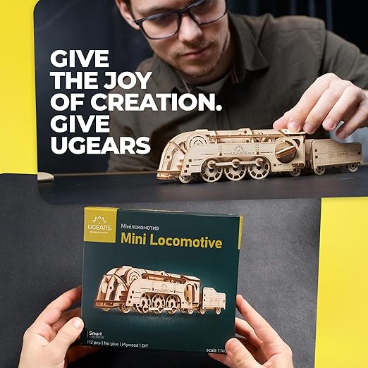 Ugears ミニ機関車 70228 木製パズル 立体 工作 おもちゃ 組立 接着剤工具不要