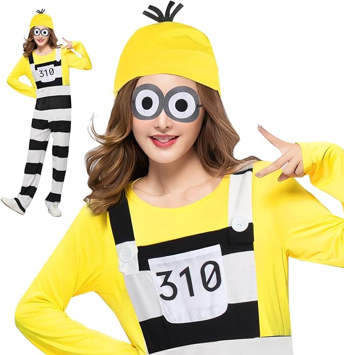 [Mprocen] ハロウィン コスプレ 囚人 大人コスチューム レディース 囚人服 イエロー 黄色 囚人コスプレ 黒白ストライプ 帽子付 男女兼用 仮装 キャラクター 囚人服 クリスマス ハロウィン仮装