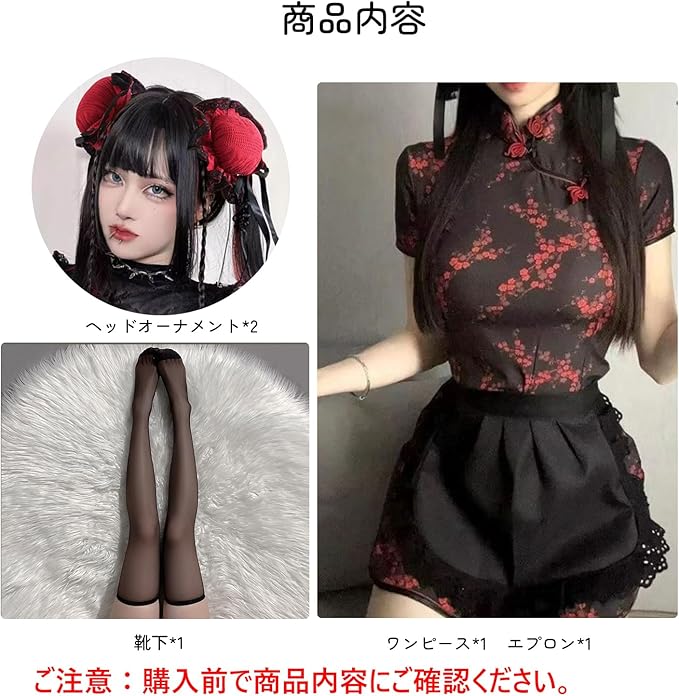 [QOOLY?] チャイナドレス コスプレ メイド服 ロリータ ワンピース コスチューム チャイナ風 可愛い かわいい ハロウィン クリスマス 仮装